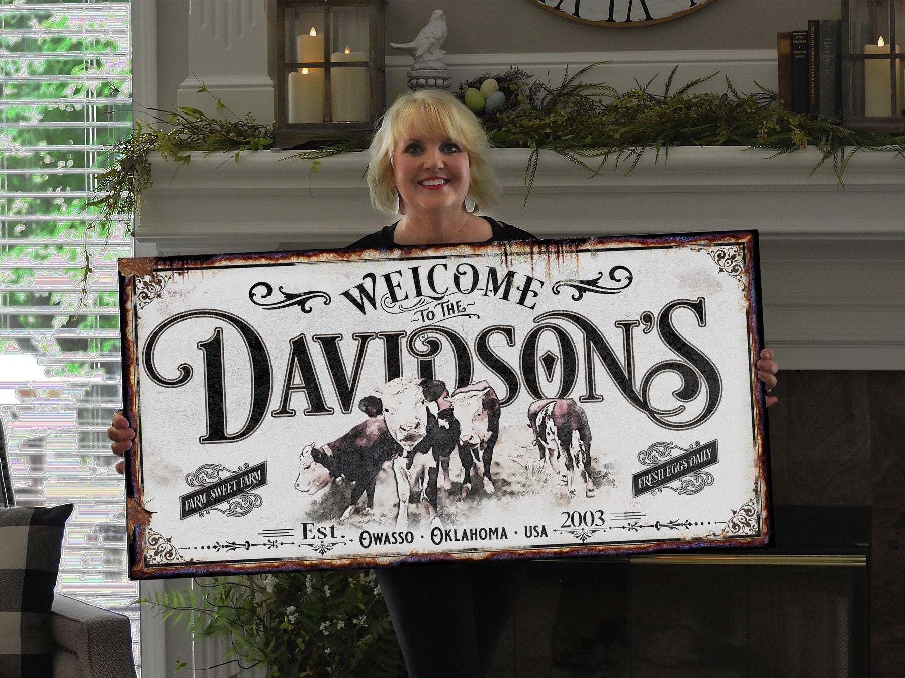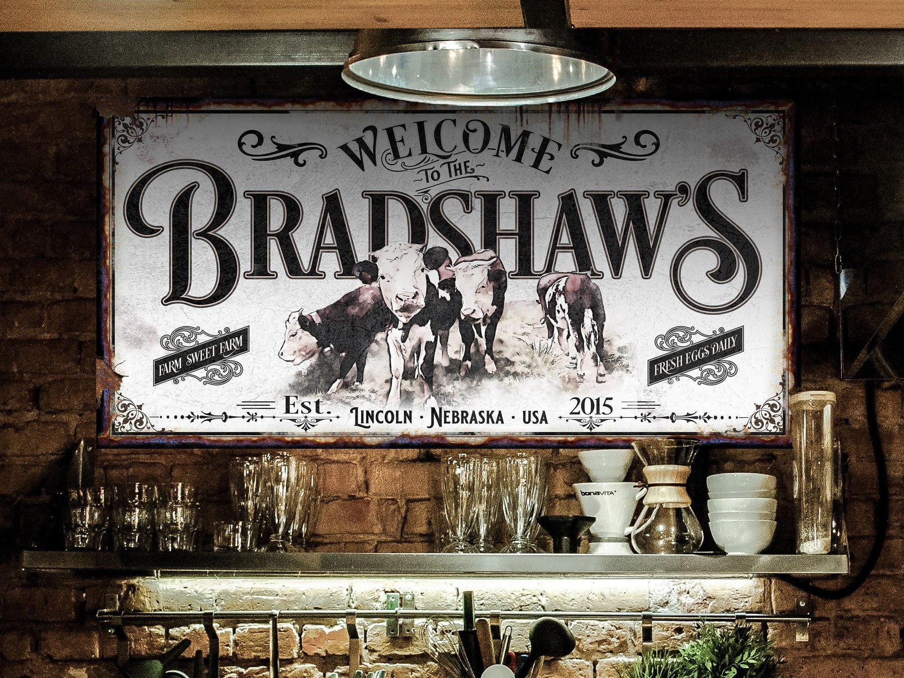 Hereford Cattle Ranch Sign | Last Name Home Sign | Hereford Sign | Ranch House Plans | Farm Wall Decor | Distressed Sign
