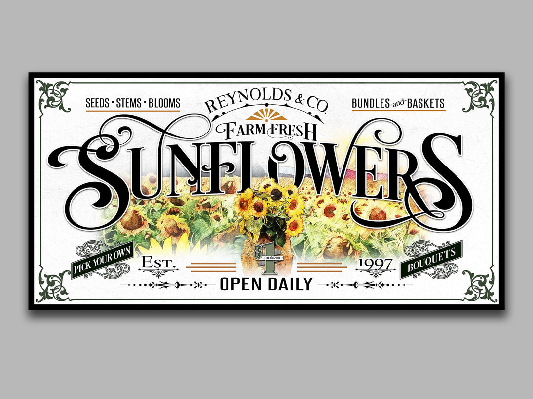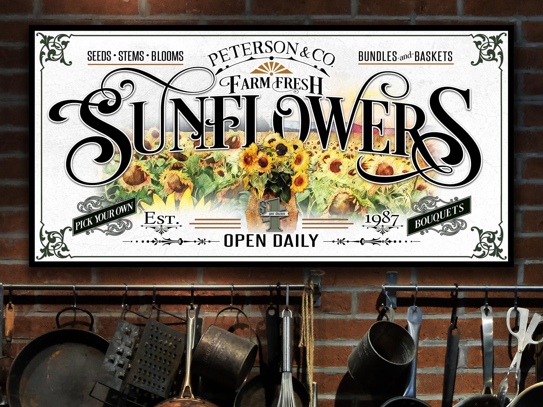 This custom Sunflower Name sign offers a bright, country farmhouse look and feel. I will customize this Sunflower sign by integrating your name at the top of the vintage art you see and your established year. Please note: You can get this with or without the Est. Year - just let me know when you order.